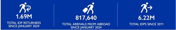 - 1.14 million people have returned to area of origin, of whom 523,100 were internally displaced.